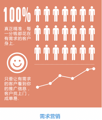 Pay-per-effect online marketing services, with the help of Baidu’s 87% Chinese search engine market share and 600,000 affiliate websites, create a demand platform linking hundreds of millions of netizens and enterprises, allowing people in need to easily find products and services that suit them. , It also allows companies to obtain a large number of potential customers with a small amount of investment, effectively enhancing the corporate brand influence.
